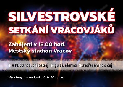 - Vedení města Vracova všechny zve na Silvestrovké setkání Vracovjáků ve středu 31. prosince 2025 od 18:00 hod. v areálu Městského stadionu. Guláš zdarma, svařené víno, punč, čaj, grilované klobásy. V 19:00 hodin ohňostroj.
